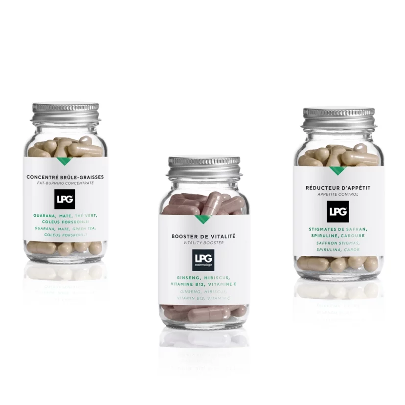 Grâce à un extrait breveté et cliniquement prouvé, notre produit agit directement au niveau des neurotransmetteurs (sérotonine) pour réduire les fringales et le grignotage émotionnel. Associé à une cure LPG®, ce complément optimise les résultats minceur en renforçant l’action sur les adipocytes, pour une silhouette affinée et durablement sculptée.